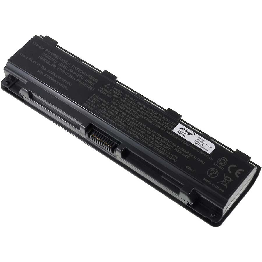 10,8V 5200mAh/56Wh Li-Ion Svart 205mm x 52mm x 21mm Powery