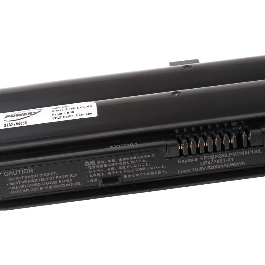 10,8V 5200mAh/56Wh Li-Ion Svart 202,5mm x 51,10mm x 20,4mm Powery