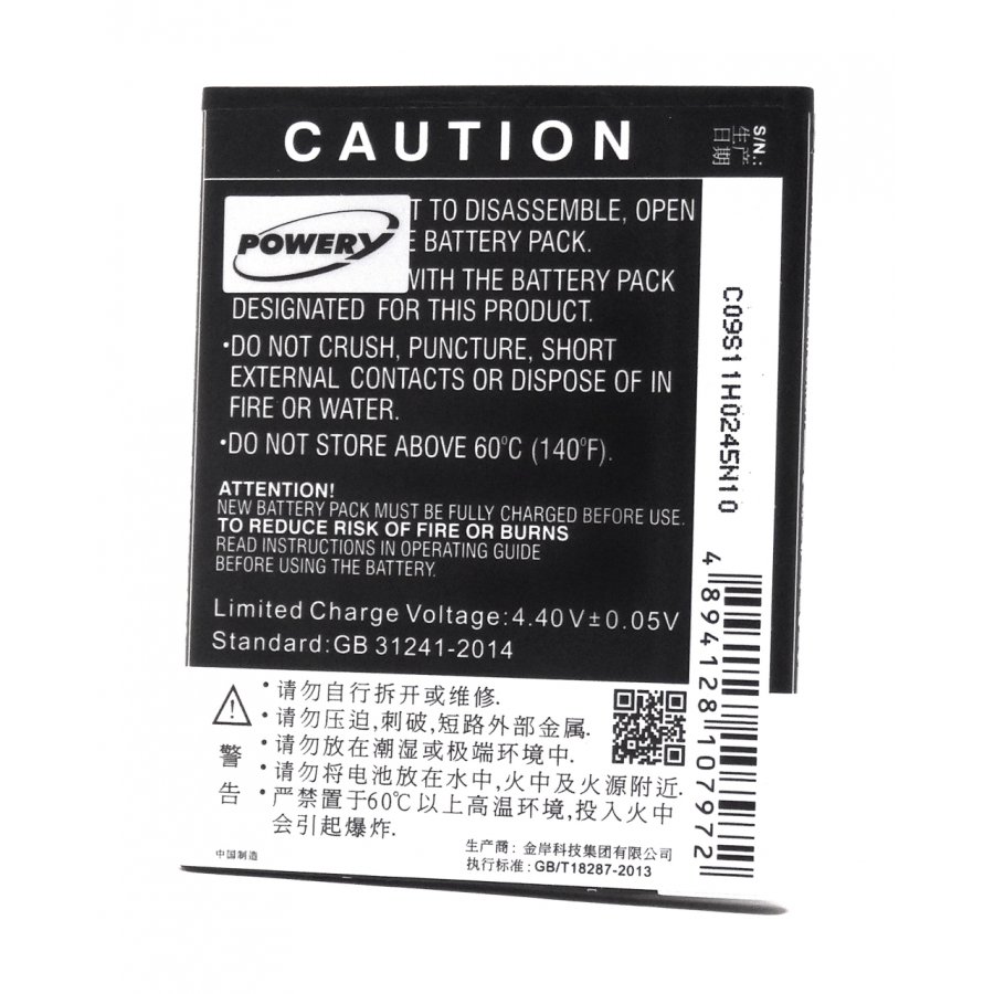 3,85V 3020mAh/11,6Wh Li-Ion Svart 81,60mm x 64,90mm x 4,20mm Powery