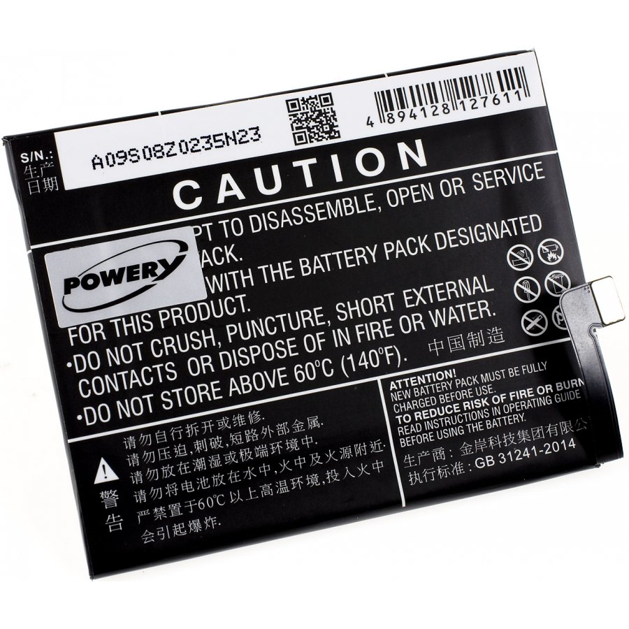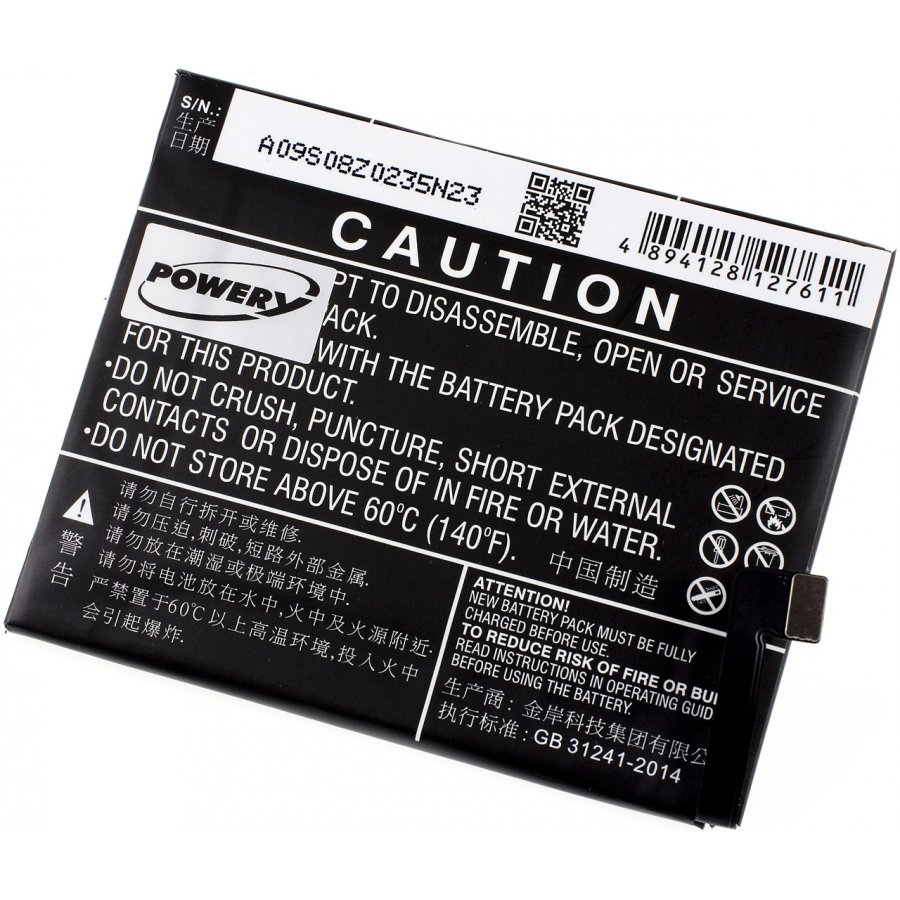 3,85V 3100mAh/11,9Wh Li-Polymer Svart 75,00mm x 59,60mm x 4,40mm Powery