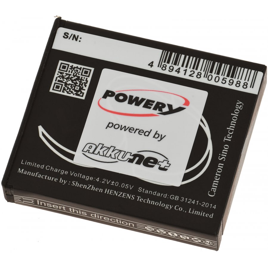 3,6V 1050mAh/3,8Wh Li-Ion Svart 40,4mm x 36,5mm x 7,4mm Powery