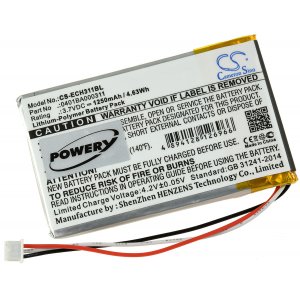 3,7V 1250mAh/4,6Wh Li-Polymer Svart 59,70mm x 37,10mm x 6,30mm Powery