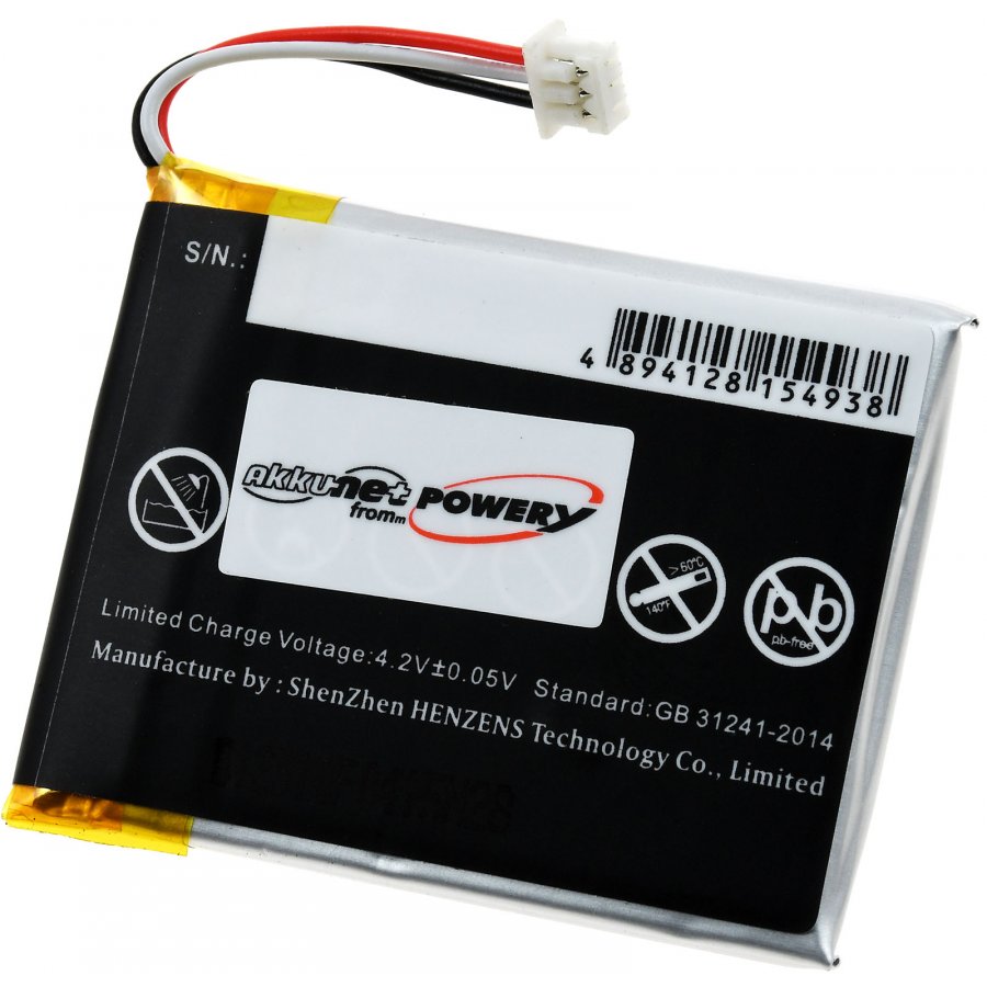 3,7V 650mAh/2,4Wh Li-Polymer Svart 45,44mm x 33,84mm x 4,30mm Powery