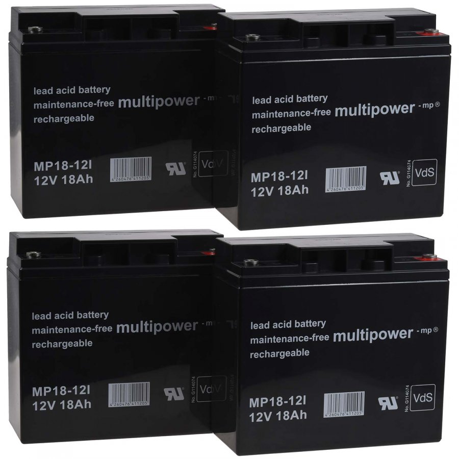 12V18Ah/216WhLead-AcidSvart181mm x 76mm x 167mmMultipower4051363442767Satsen innehåller 4
