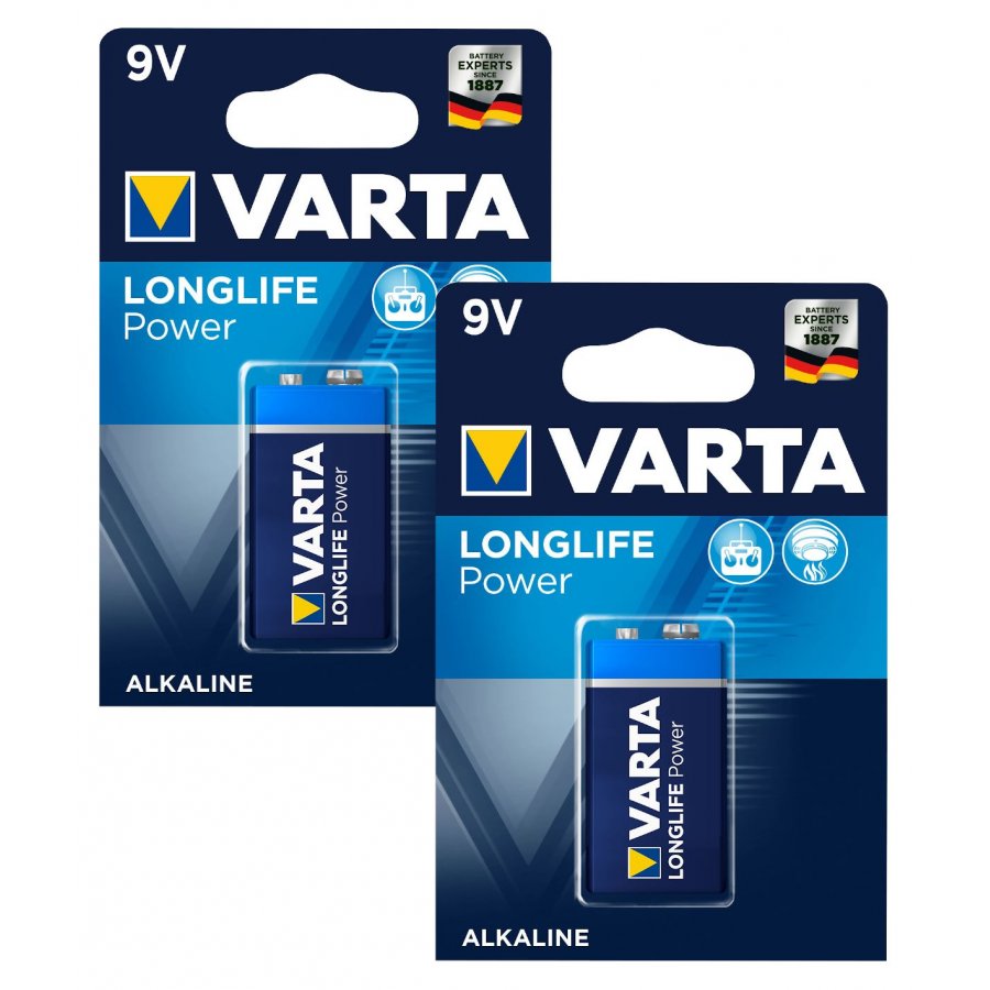 2 batterin Varta typ 6LF22, PP3, 6LR61, 9V-Blockbatterir 2x 1/ Blister