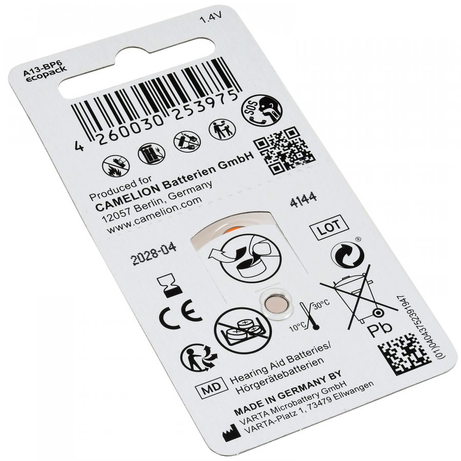 Camelion Höselrapparat batteri 13AE / A13 / DA13 / PR48 / PR754 / V13att / ZL13 6/ Blister