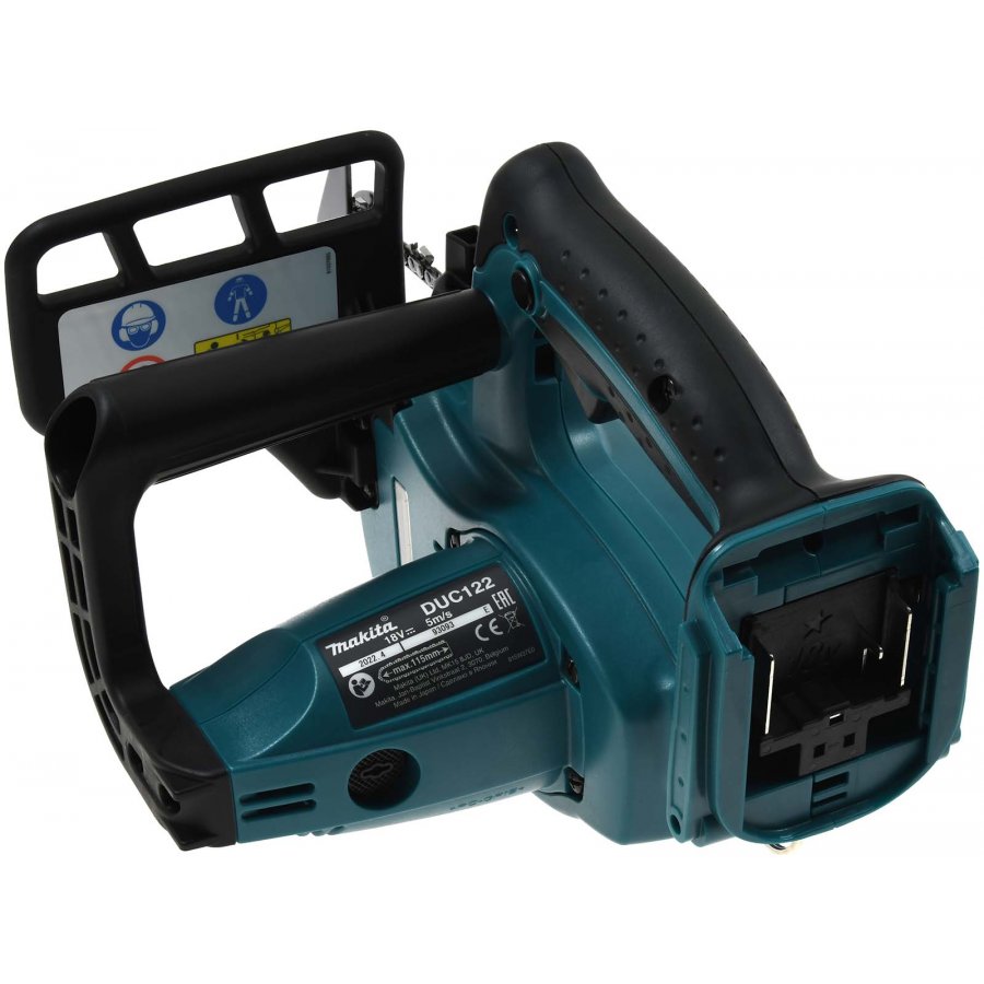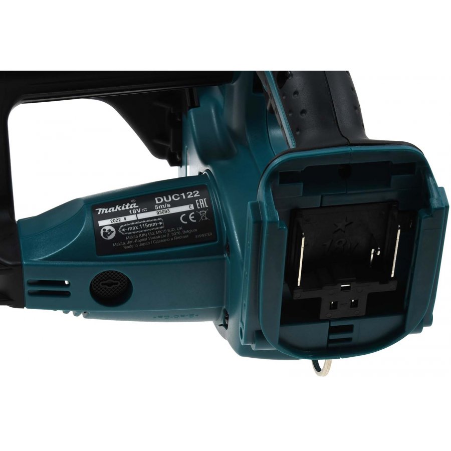 - Det finns intrigrerad en Motorbremse i Makita DUC122Z, som säkrar att savkæden stoppar