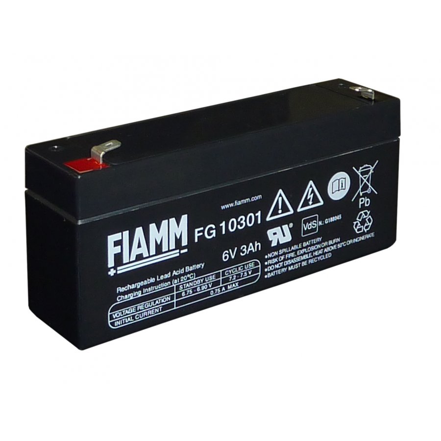 6V3AhBly134mm x 34mm x 60mm (67mm)Fiamm blybatteri FG10301 6V 3Ah