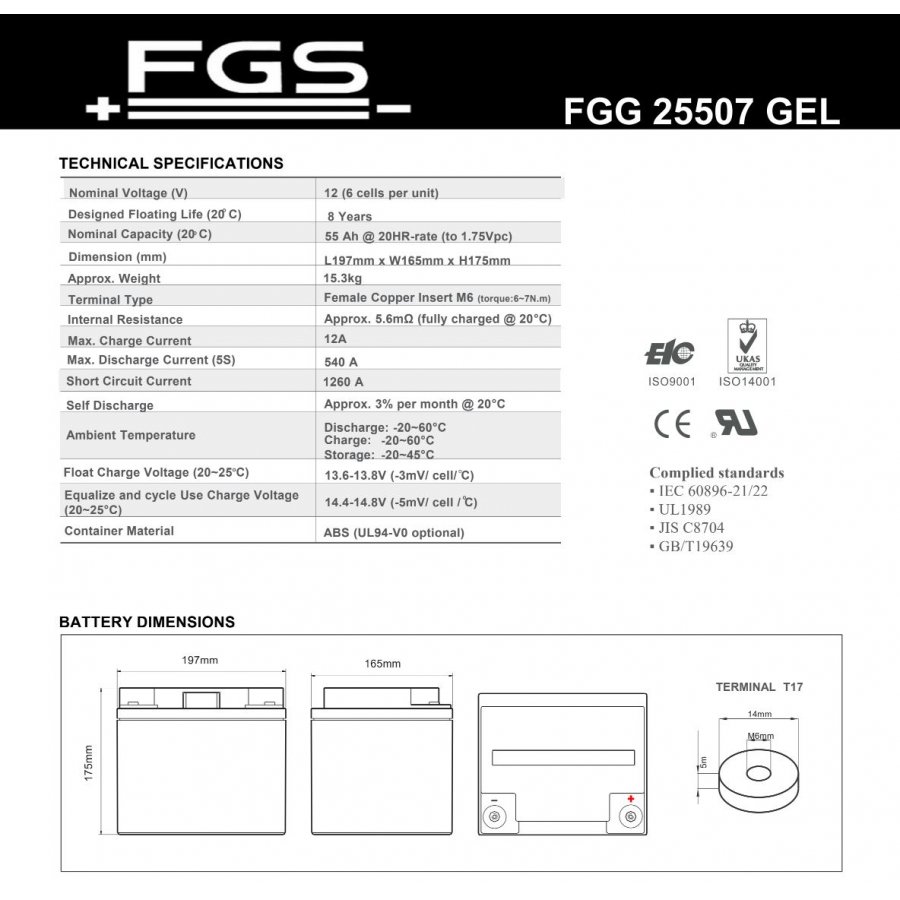 12V55Ahblybatteri198x166x171Batteri till Städmaskin Weidner STAR 2-55 E (FGG25507)